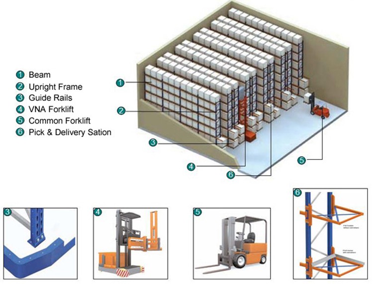 3. Safe storage of goods: The structural design of VNA rack is stable,