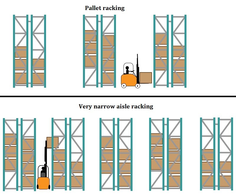 • Very Narrow Aisle Pallet Racking